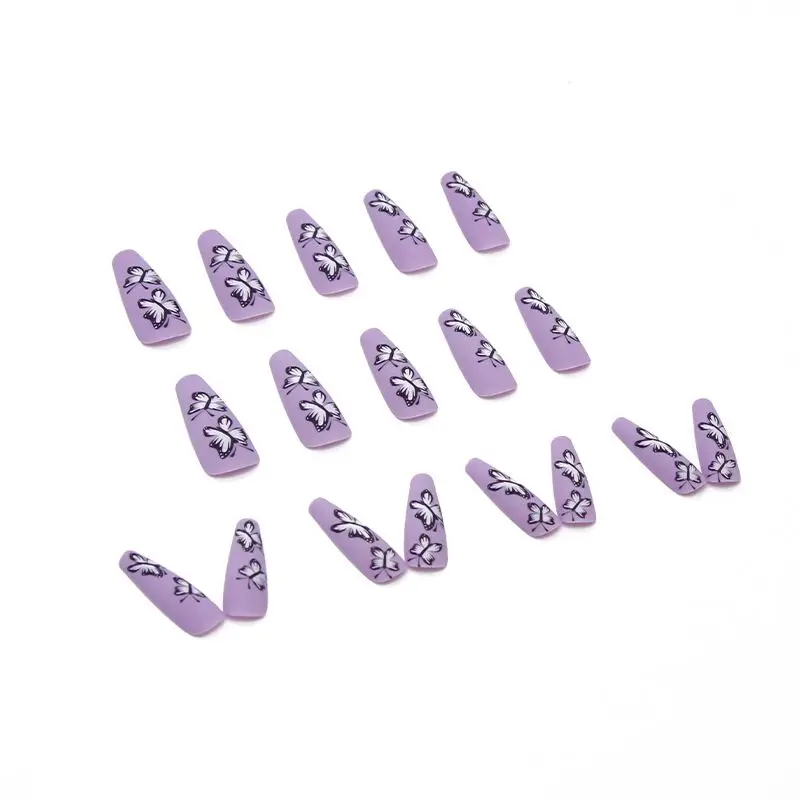 24 шт матовые накладные ногти удлиненные накладные ногти в виде бабочки с клеем фиолетовые маникюрные балерины пресс на ногти искусственные губки