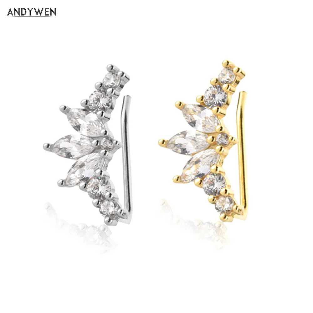 Серьги ANDYWEN из стерлингового серебра 925 пробы с золотистым прозрачным цветком из циркония для альпинизма модная булавка для вечерние оваль Королева роскошные изящные ювелирные изделия