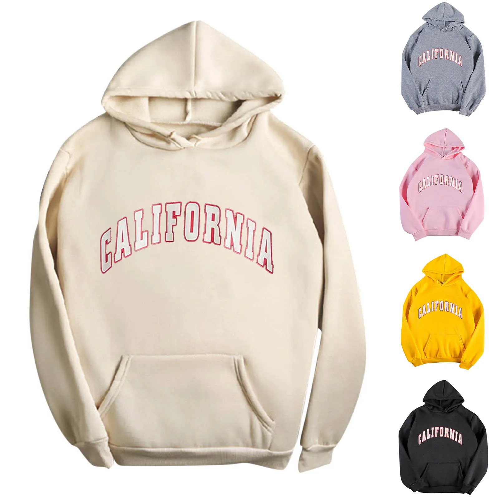 Женская толстовка с капюшоном, зимняя Свободная Толстовка в стиле Харадзюку с надписью в стиле Калифорнии, кофта с капюшоном в Корейском стиле