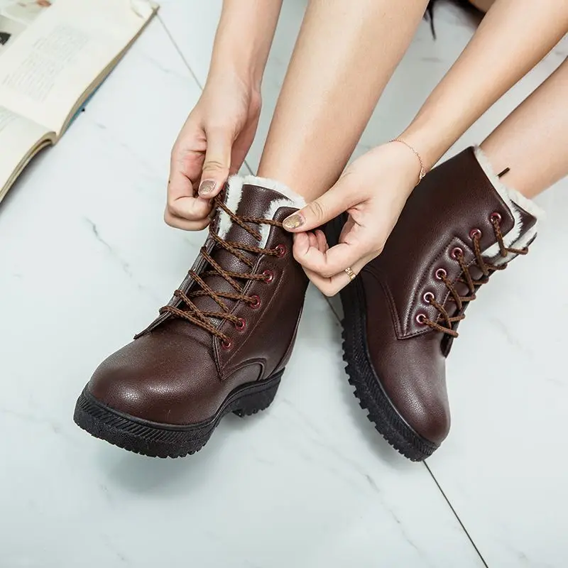 Женские зимние ботинки, зимняя обувь на шнуровке, кожаная обувь, же...