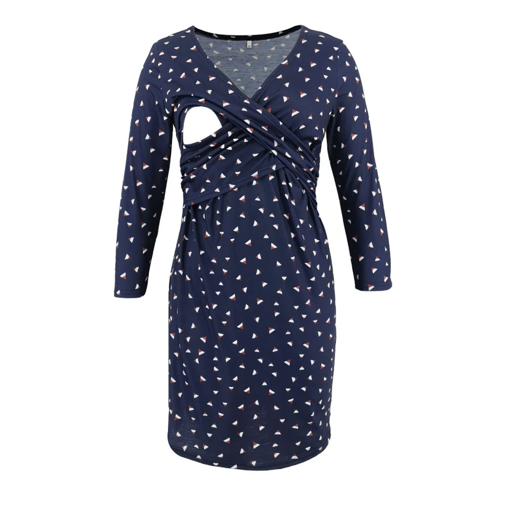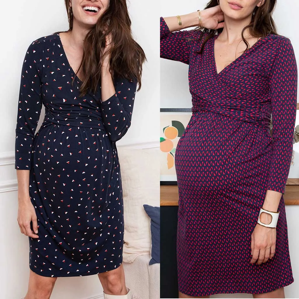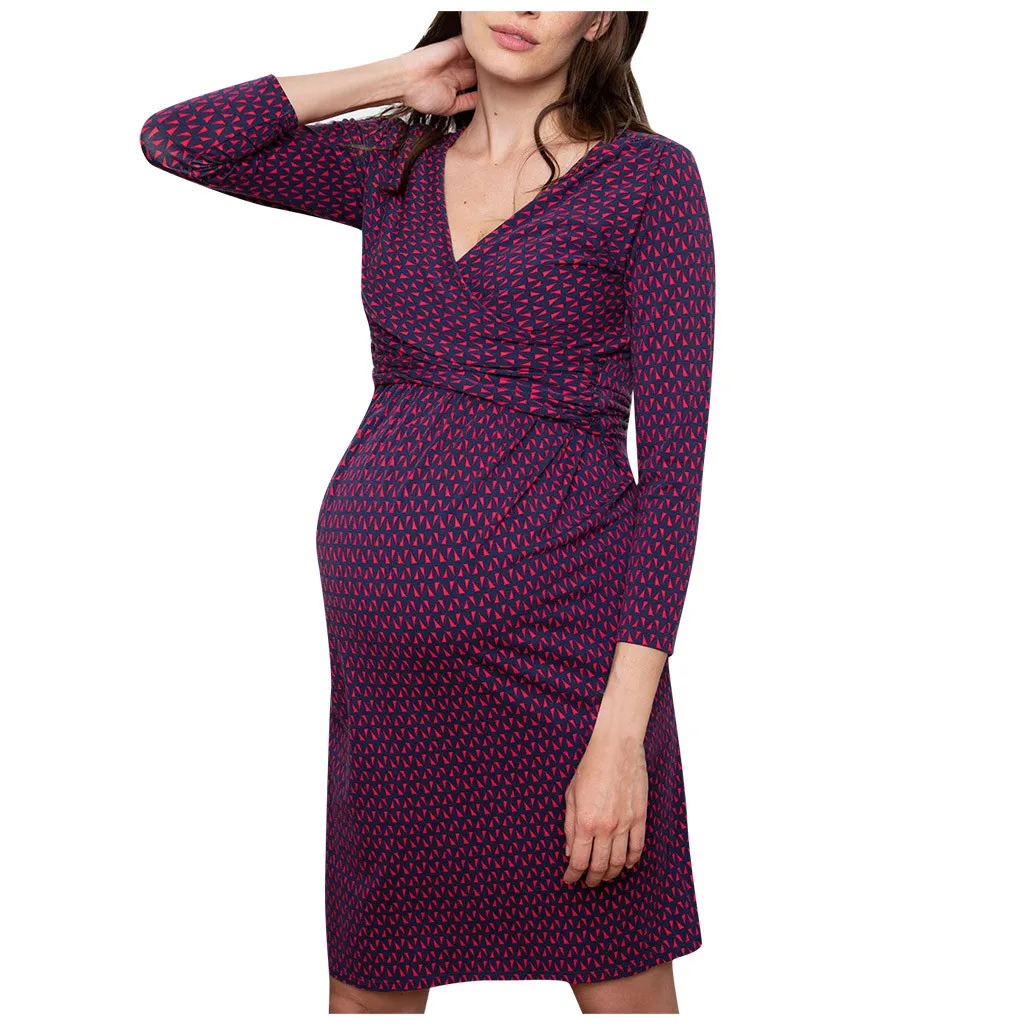 2021 женское платье для беременных Vestidos Повседневное платье для беременных с длинным рукавом с цветочным принтом и V-образным вырезом Прямая поставка #