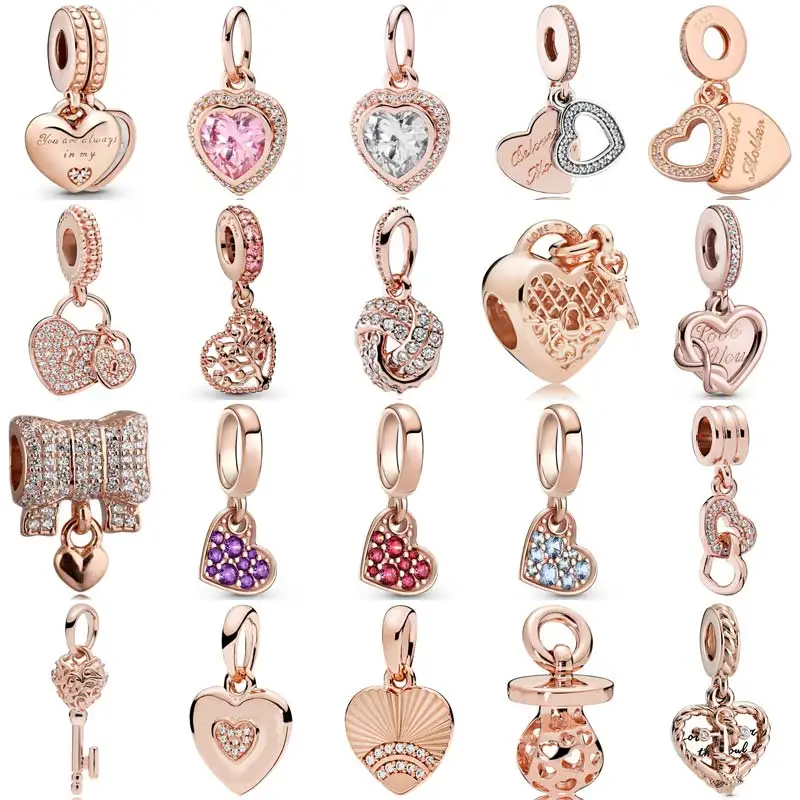 Оригинальный Новый Шарм S925, роза, мама и дочь, сердца, замок, дерево любви, кулон, бисер, подходит для популярного браслета, Diy ювелирные изделия