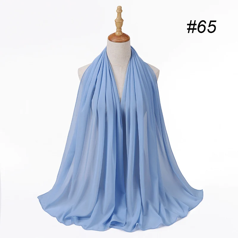 Шифоновый хиджаб для мусульманских женщин, однотонный головной плат...