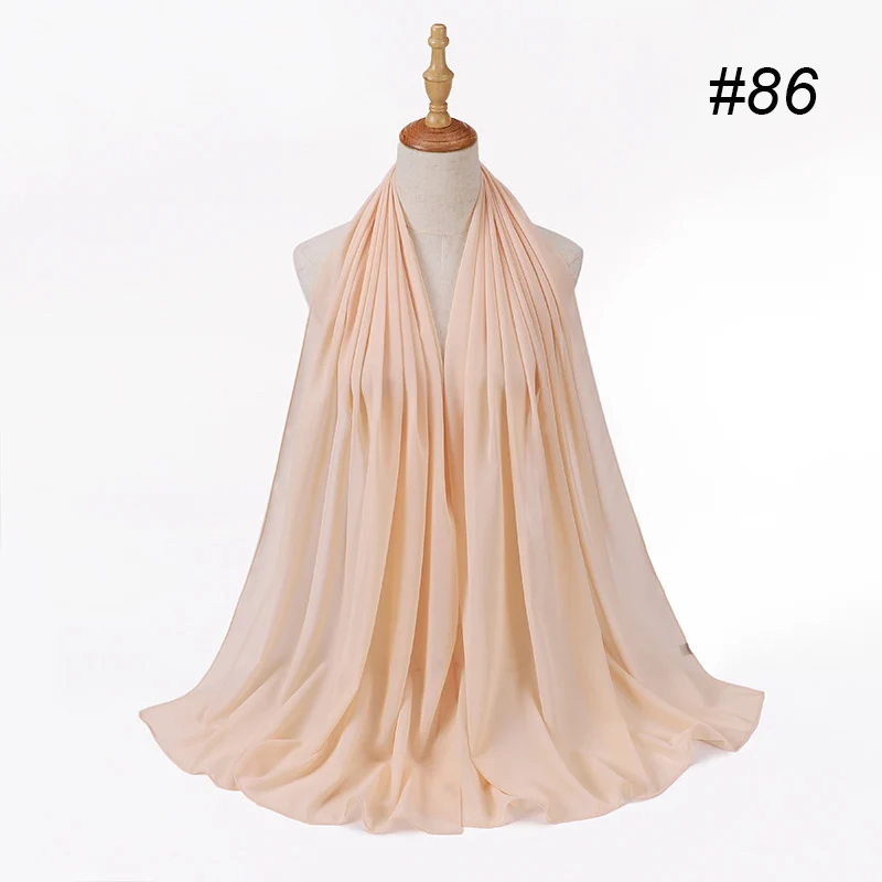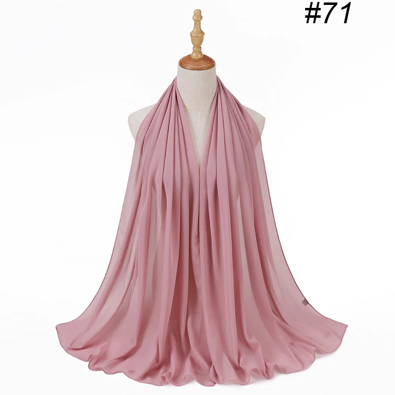 Шифоновый шарф, хиджаб, повязка на голову, Женский исламский головной убор, накидка для женщин, однотонный цвет, мусульманские искусственные шарфы для волос, головной платок