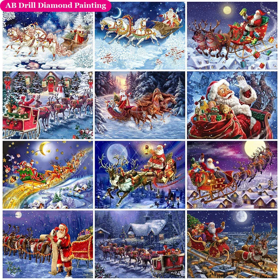 Новый набор для алмазной живописи AB, зимняя Алмазная мозаика с снегом, Санта-Клаус, отправка животного, лось, лошадь, сани, алмазная вышивка, домашний декор