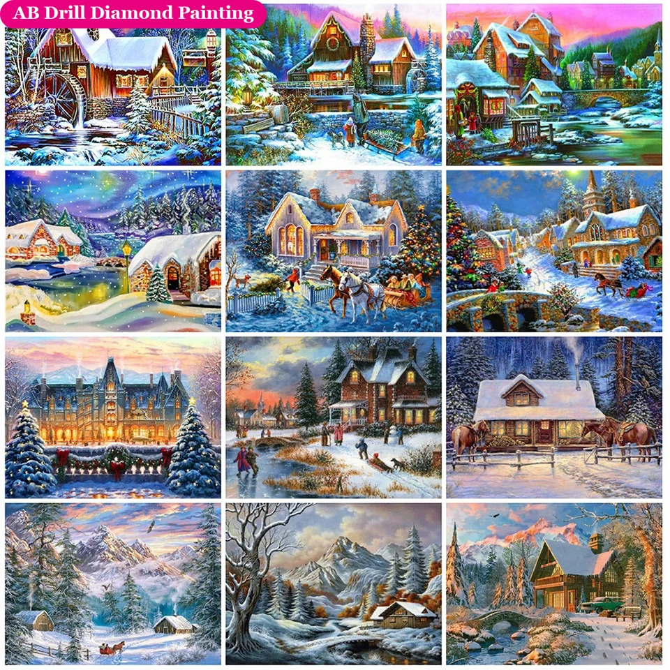 Квадратныекруглые наборы для алмазной живописи AB, снежный пейзаж, ...