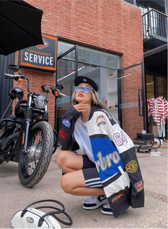 Женская куртка с принтом, гоночный костюм, американская уличная кур...