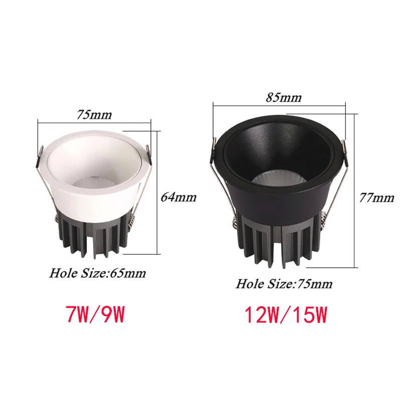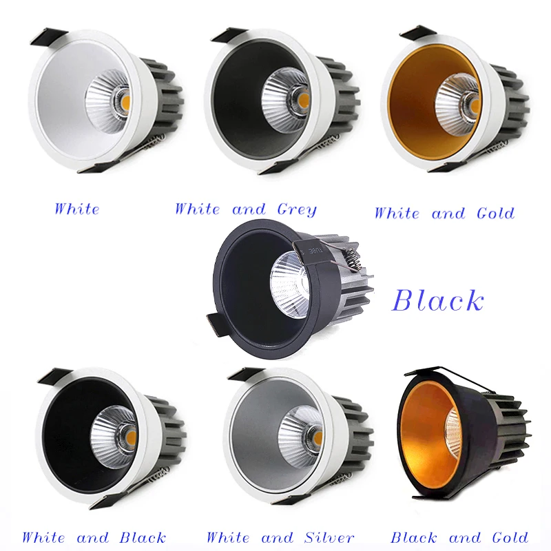 Приглушаемые утопленные антибликовые COB светодиодные потолочные светильники 7 Вт9 Вт12 Вт15 Вт, светодиодная лампа дневного света 85 265 В, внутреннее освещение