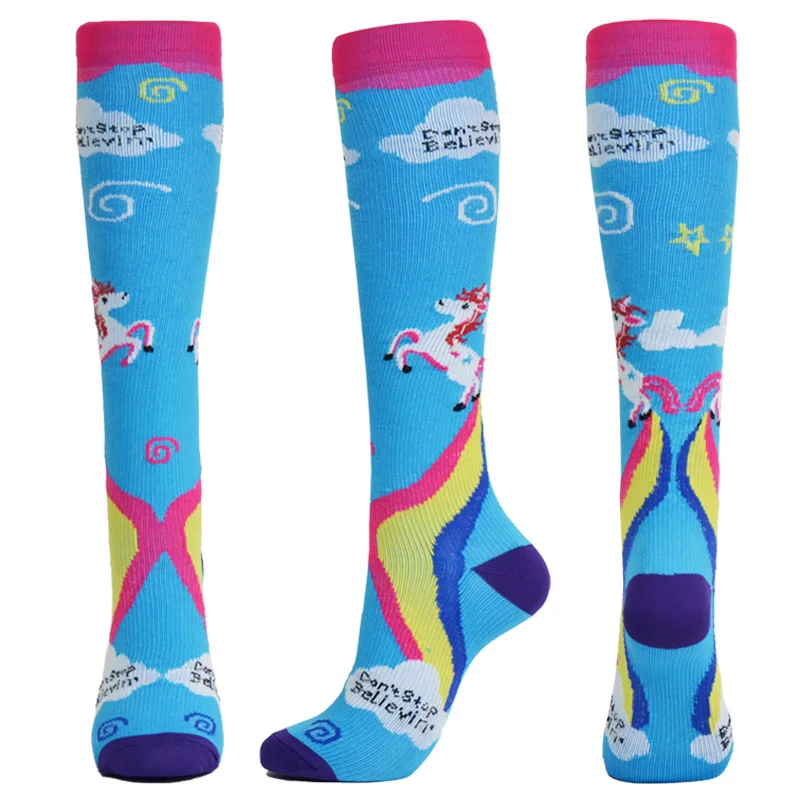 Носки компрессионные длинные с принтом животных, лисы, единорога, зебры