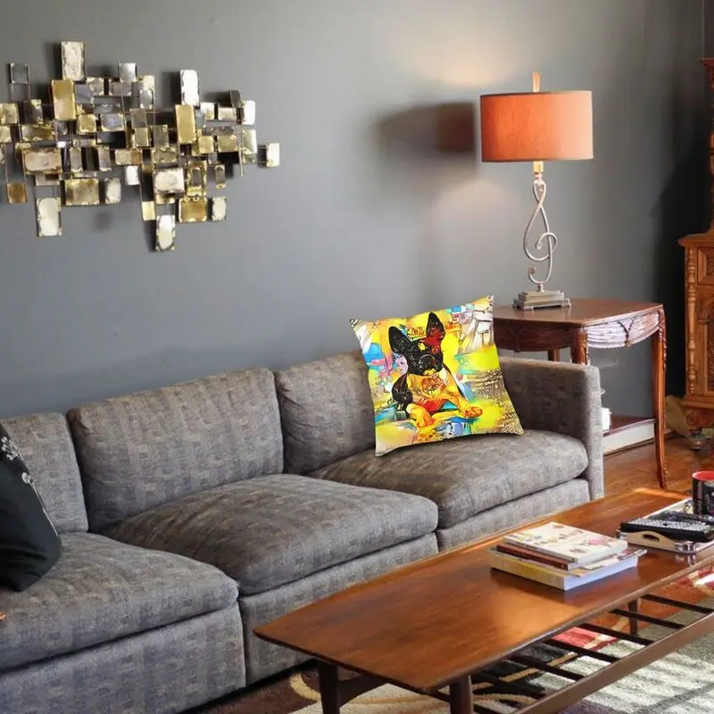 Модный квадратный чехол с портретом французского бульдога для подуш...