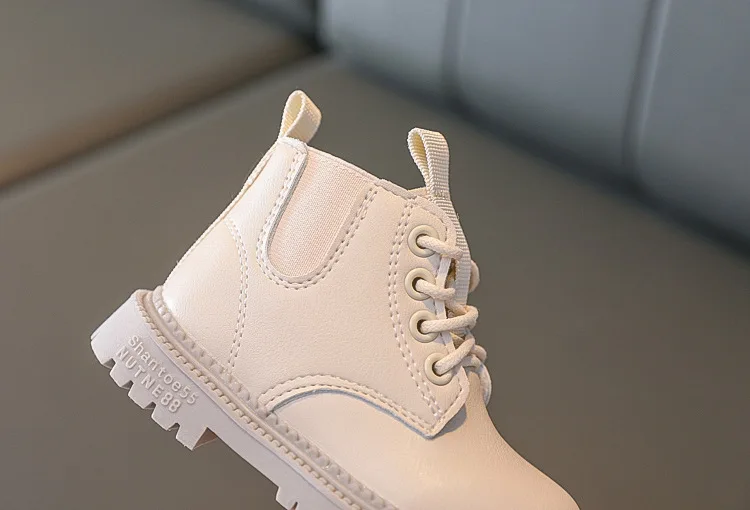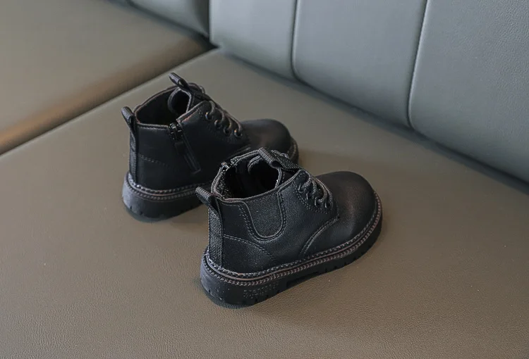 Осенне-зимние теплые детские Ботинки Martin с бархатной подкладкой для девочек и мальчиков модные кожаные ботинки с мягкой нескользящей подошвой детская обувь для бега