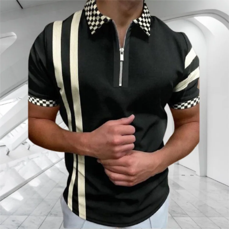 Рубашка-поло мужская с отложным воротником, повседневная с короткими рукавами, на молнии, в стиле пэчворк, уличная одежда, лето 2021