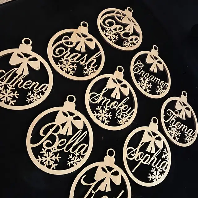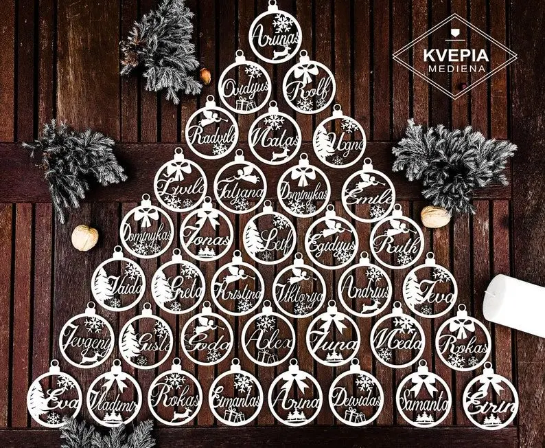 Индивидуальные рождественские шары по индивидуальному заказу, рождественская подвеска в деревянных украшениях, имена лазерной резки, фотосессия с именем