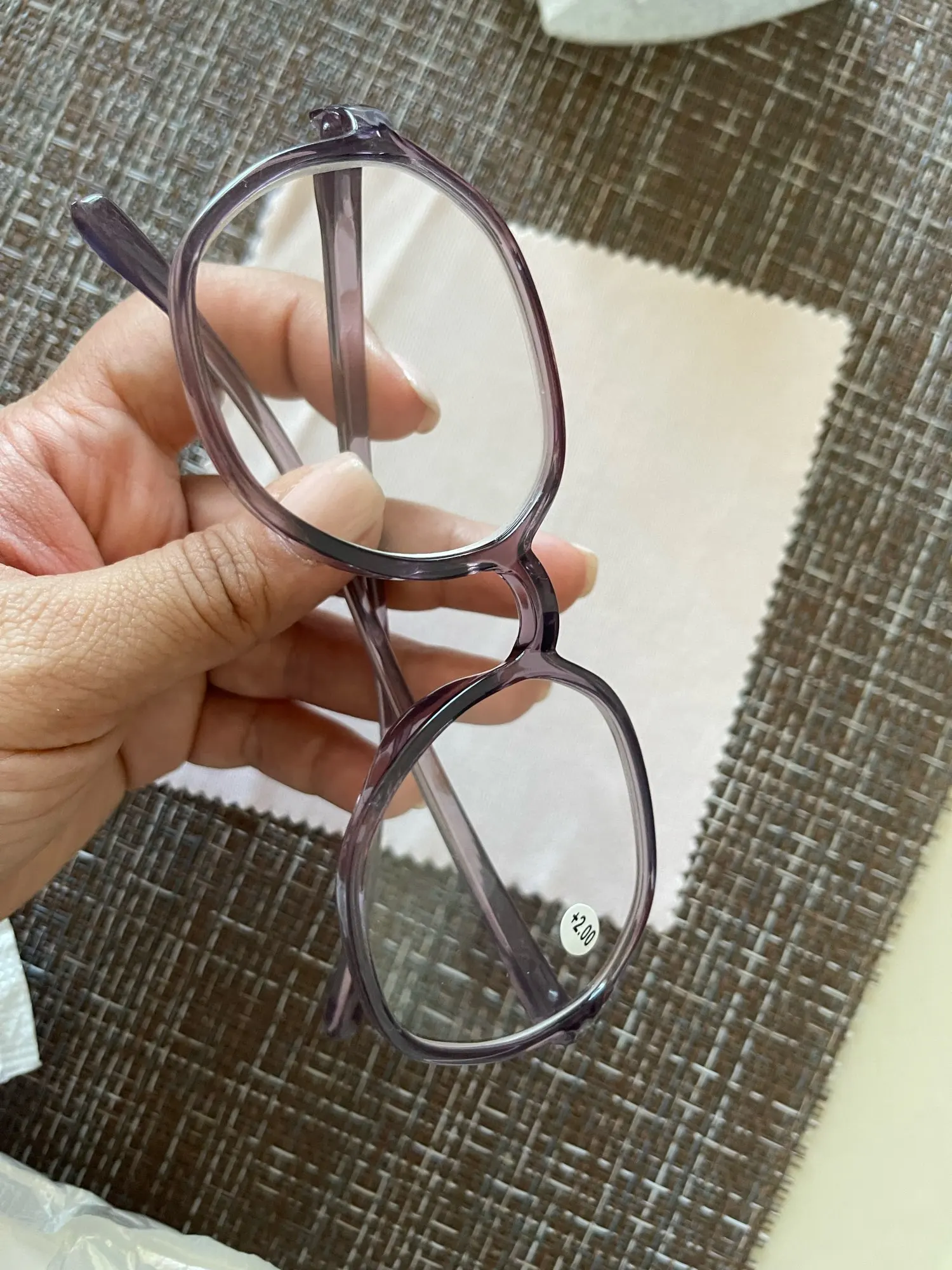 Купила женские очки на подарок с прозрачной фиолетовой оправой с дипазиториями +1,50 (+150). Линзы также хорошо защищают от синего света и подходят для чтения и защищают от компьютерного экрана . Длительность доставки 17 дней через 5Post. Я заказала ещё одни розовые очки для себя. Продавец выполнил мою просьбу и отправил их вместе в одном конверте с более быстрой доставкой.