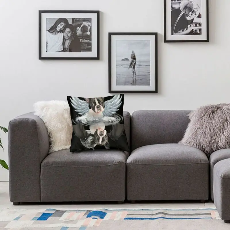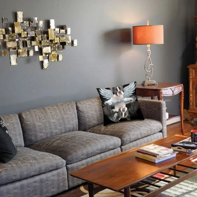 Роскошный Ангел Бостон терьер тень под водой дьявол Бостон терьер диван вельветовый чехол для подушки собака подушка чехол домашний декор