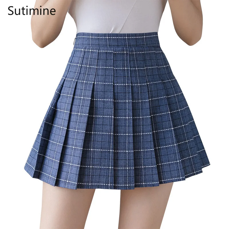Женская клетчатая плиссированная юбка кавайная, с высокой талией, а...