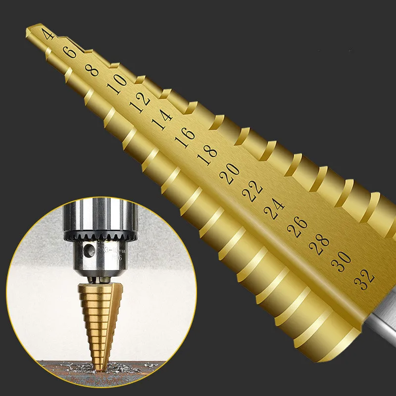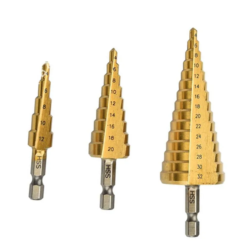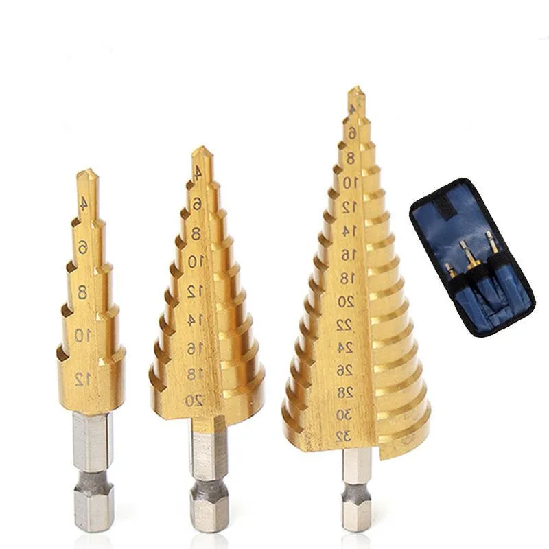 Набор ступенчатых Сверл Из 3 предметов, 3-12 мм, 4-12 мм, 4-20 мм, 4-32 мм, быстрорежущее сверло с прямым пазом и титановым покрытием, сверло для резки отверстий по дереву и металлу