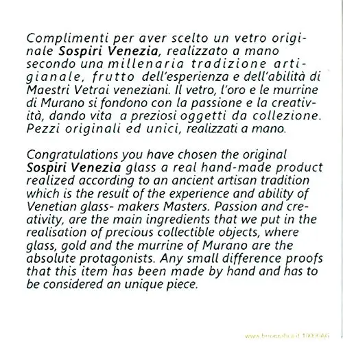 Ценность бренда вздыхает Венеция не только отражается на изысканности его стеклянных изделий, но и особенно в семейной истории Rizzi, которая производит стеклянные предметы, которые ценятся двумя поколениями. В конце S giancarlo Rizzi впервые пришел в мир стекла и усвоил все свои секреты от мастеров glaziers с большим опытом и традициями. Он изучил один из старейших методов обработки стекла, использующий стекло. Описание товара
