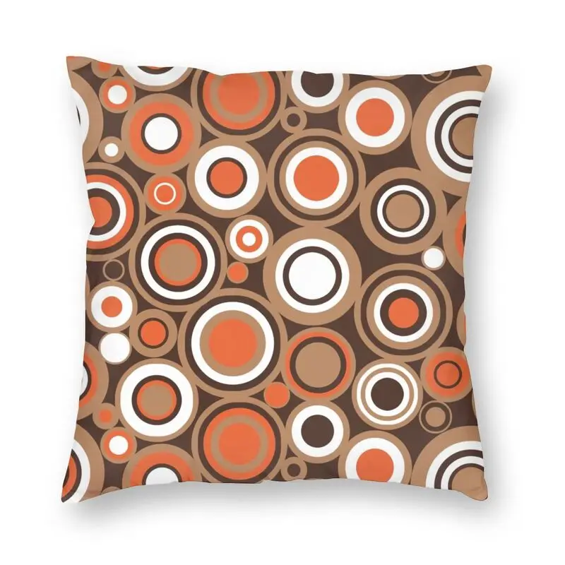 Оранжевые, белые и коричневые круглые наклейки для домашнего декора, абстрактные геометрические красочные подушки, декоративная подушка для гостиной