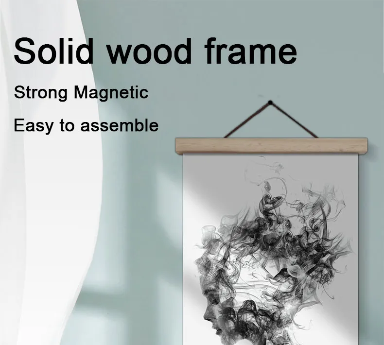 Магнитная деревянная фоторамка, железная поглощающая фоторамка, фоторамка из массива дерева, для искусства, портрета, холста, плаката, 40 50 60 см