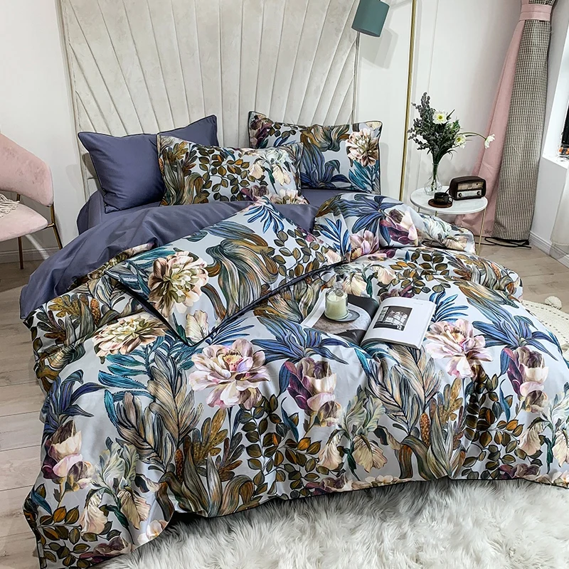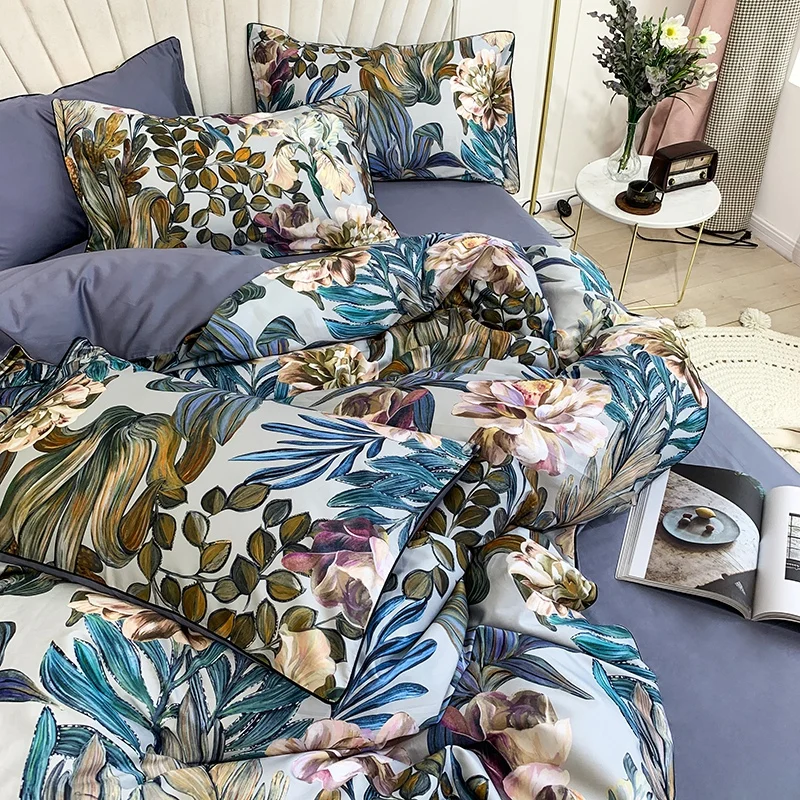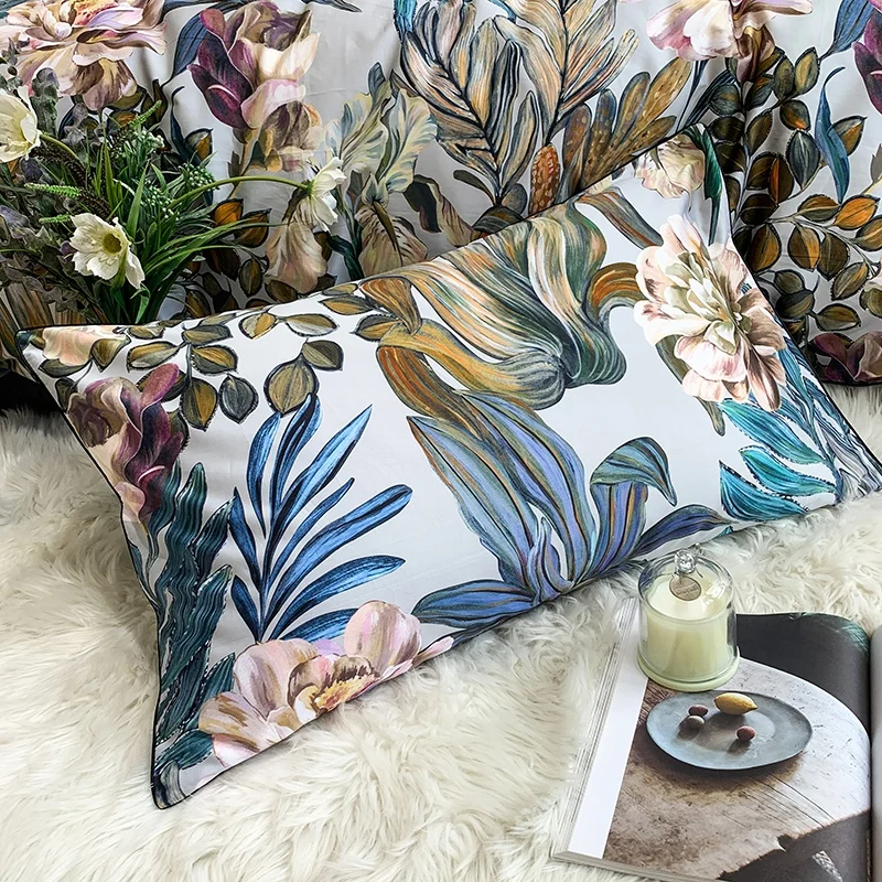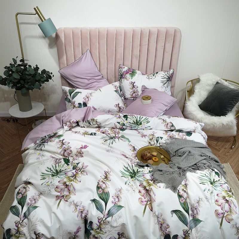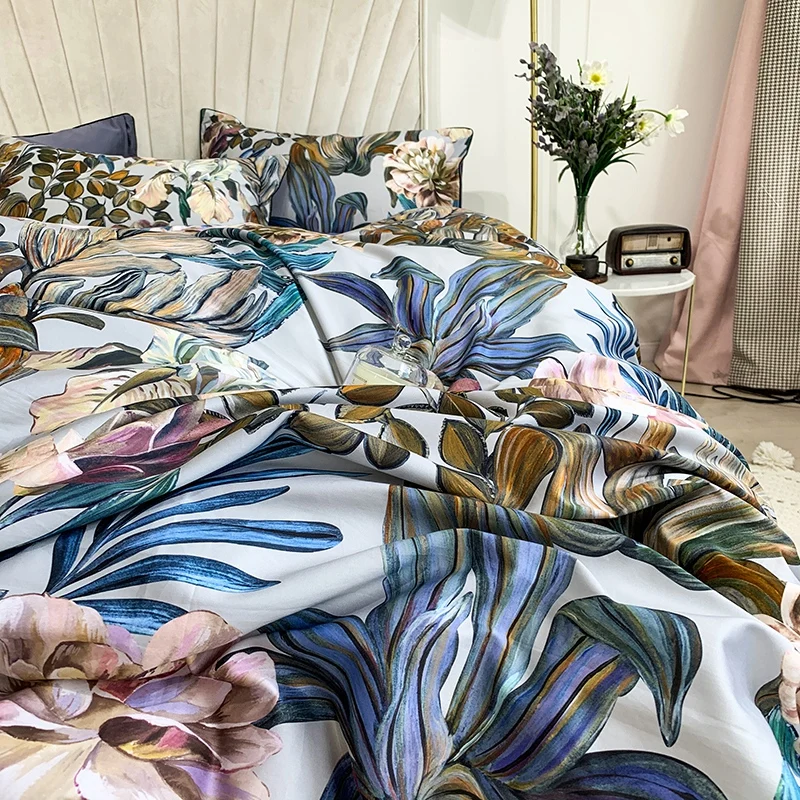 Роскошный комплект постельного белья из египетского хлопка 600TC, мягкий пододеяльник с принтом шелкопряных растений, наволочки для 1, King, Queen, Europe, Double Size