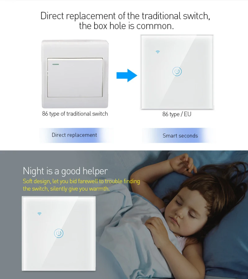 【Поддержка управления голосовым динамиком 】переключатель совместим с Alexa и Google Home Assistant, что позволяет использовать Голосовое управление smart switch для включения/выключения.