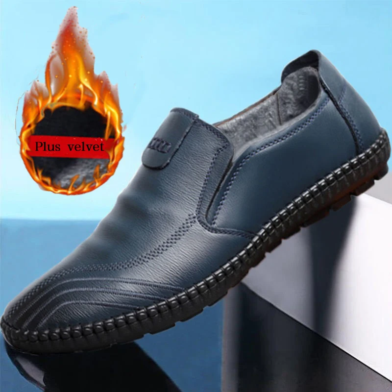 Мужские зимние кожаные повседневные туфли 2021, мягкие лоферы из ла...