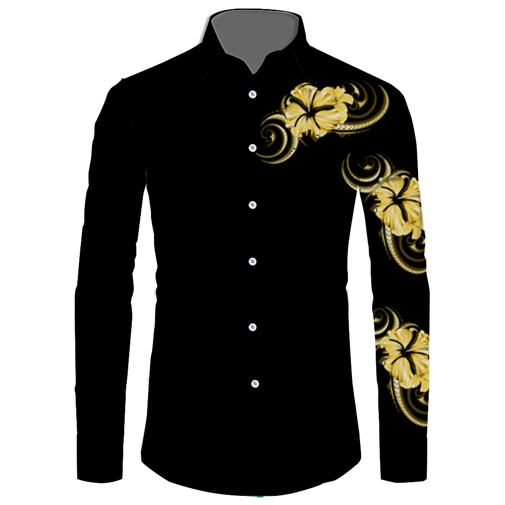 Рубашки с длинным рукавом, мужские топы, золотые мужские рубашки с длинным рукавом, рубашка с принтом самоанского, мужская рубашка с винтажным принтом, заводская цена, 6xl