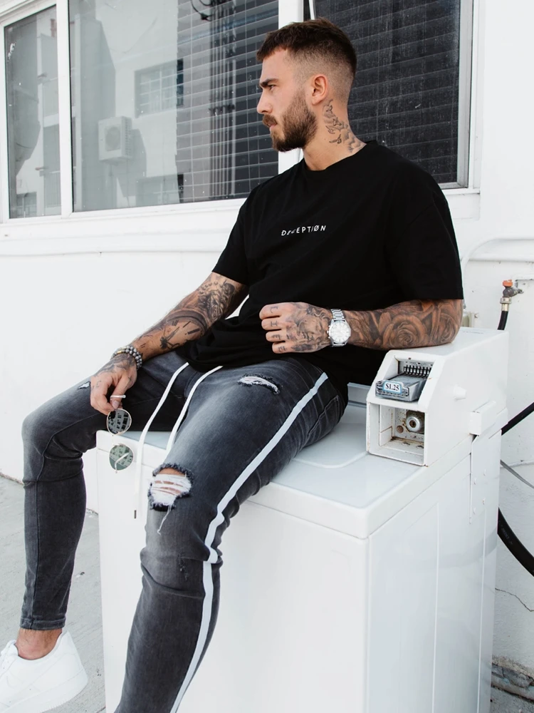 Джинсы-Карандаш мужские рваные, узкие брюки-стрейч в стиле хоп с дырками, штаны с принтом, белый цвет