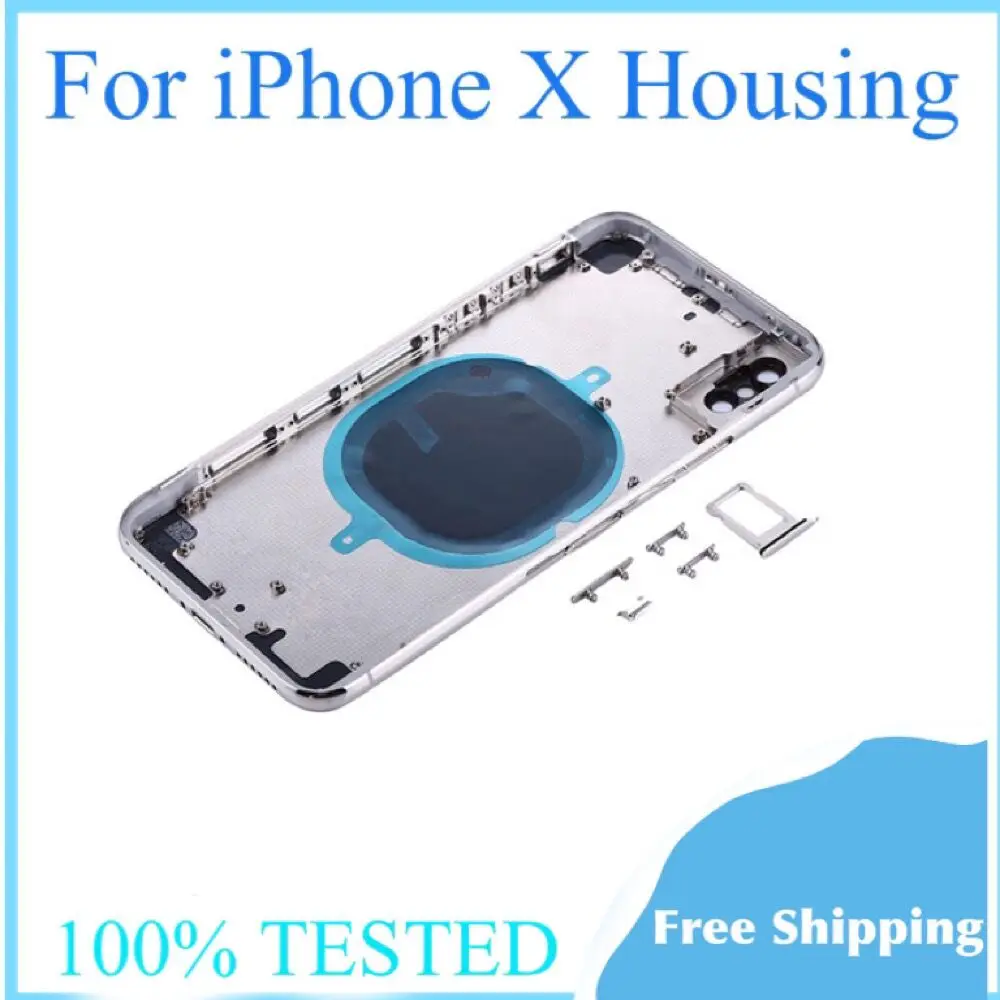 Задняя крышка аккумулятора для iPhone 8, 8 Plus, X, средняя рамка Шасси, лоток для SIM-карт, боковой ключ, задняя крышка корпуса в сборе, X, 8 Plus