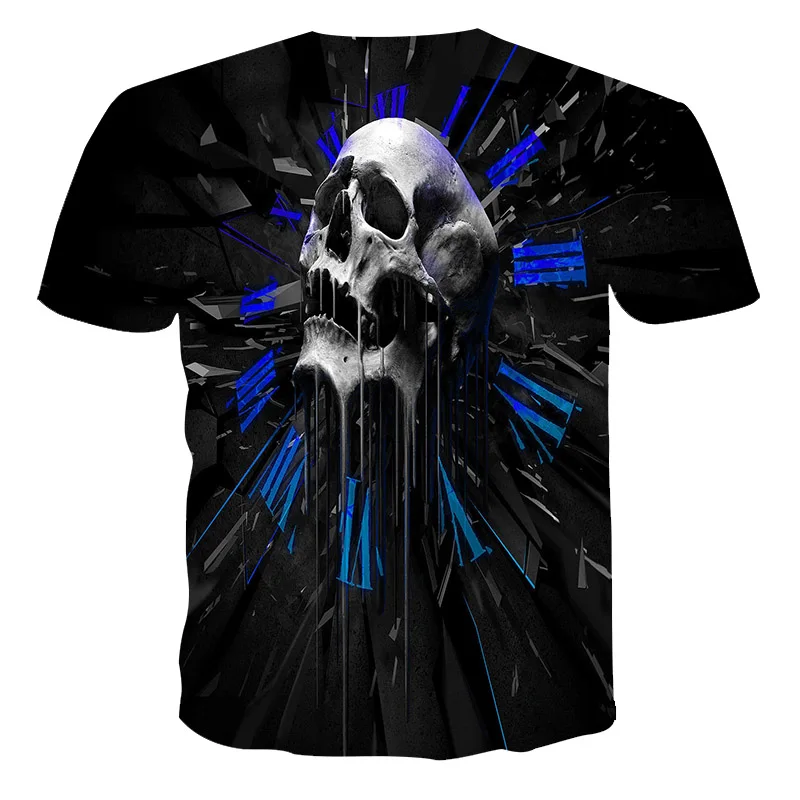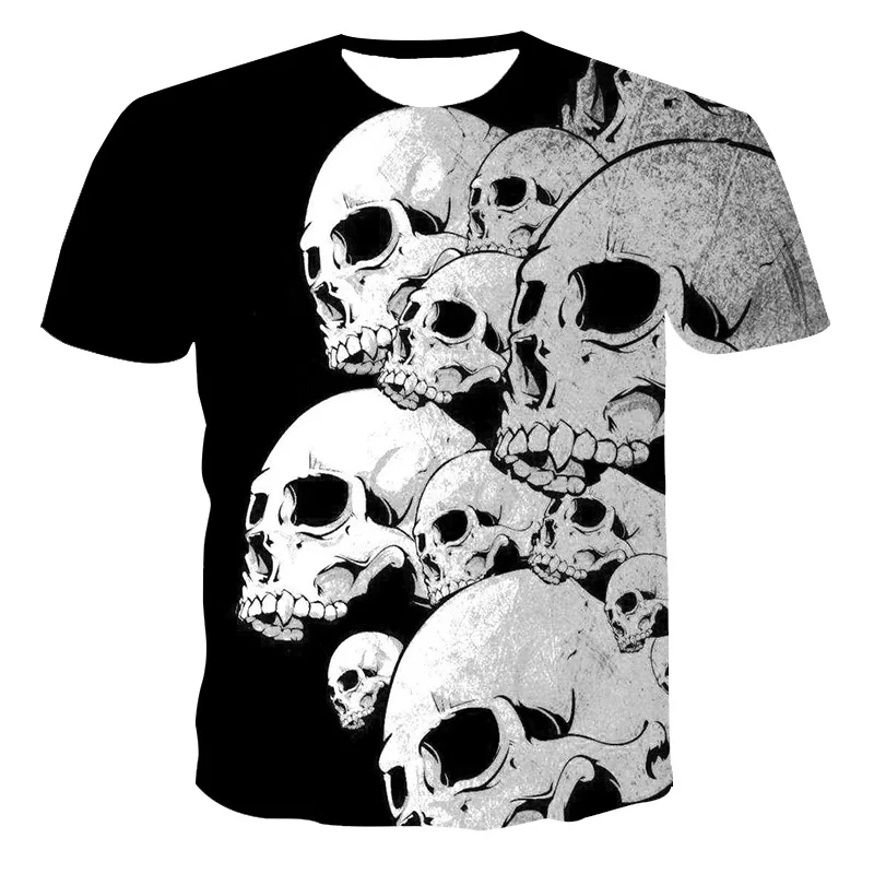 Новейшая футболка с 3D принтом черепа, модная летняя футболка большого размера в уличном стиле рок