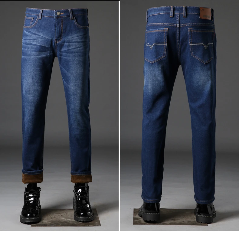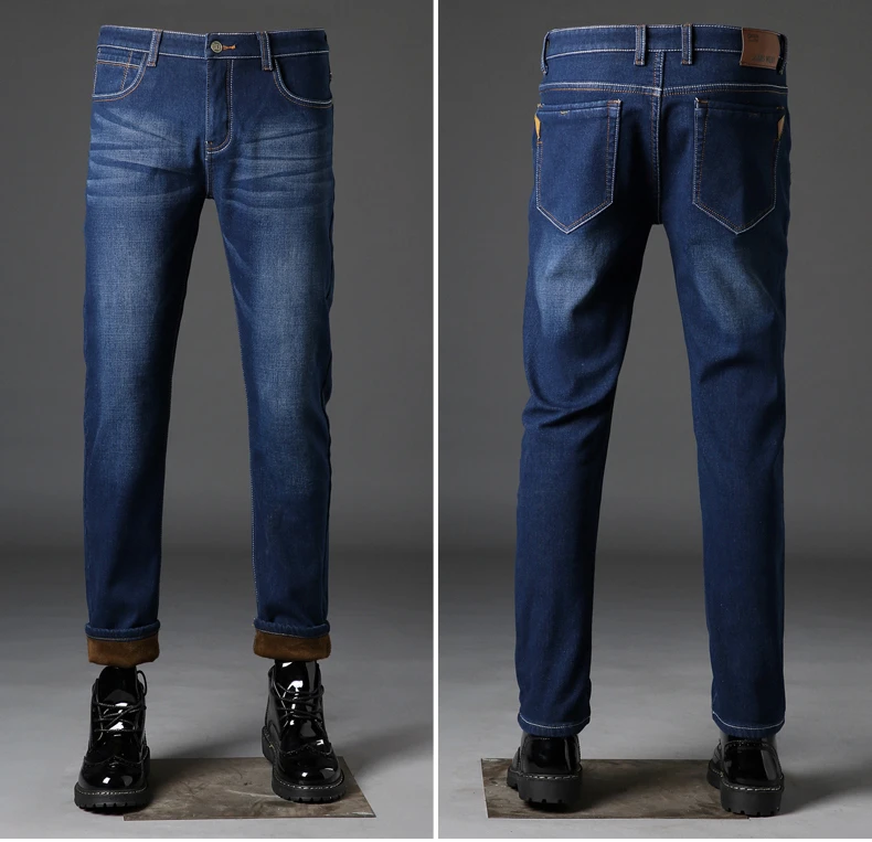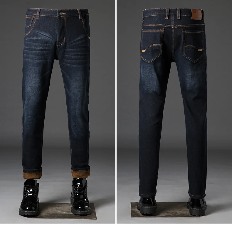 Мужские осенние джинсы 2021, брендовые модные повседневные деловые Стрейчевые облегающие брюки, Классические джинсовые брюки в стиле ретро, Зимние флисовые теплые джинсы для мужчин
