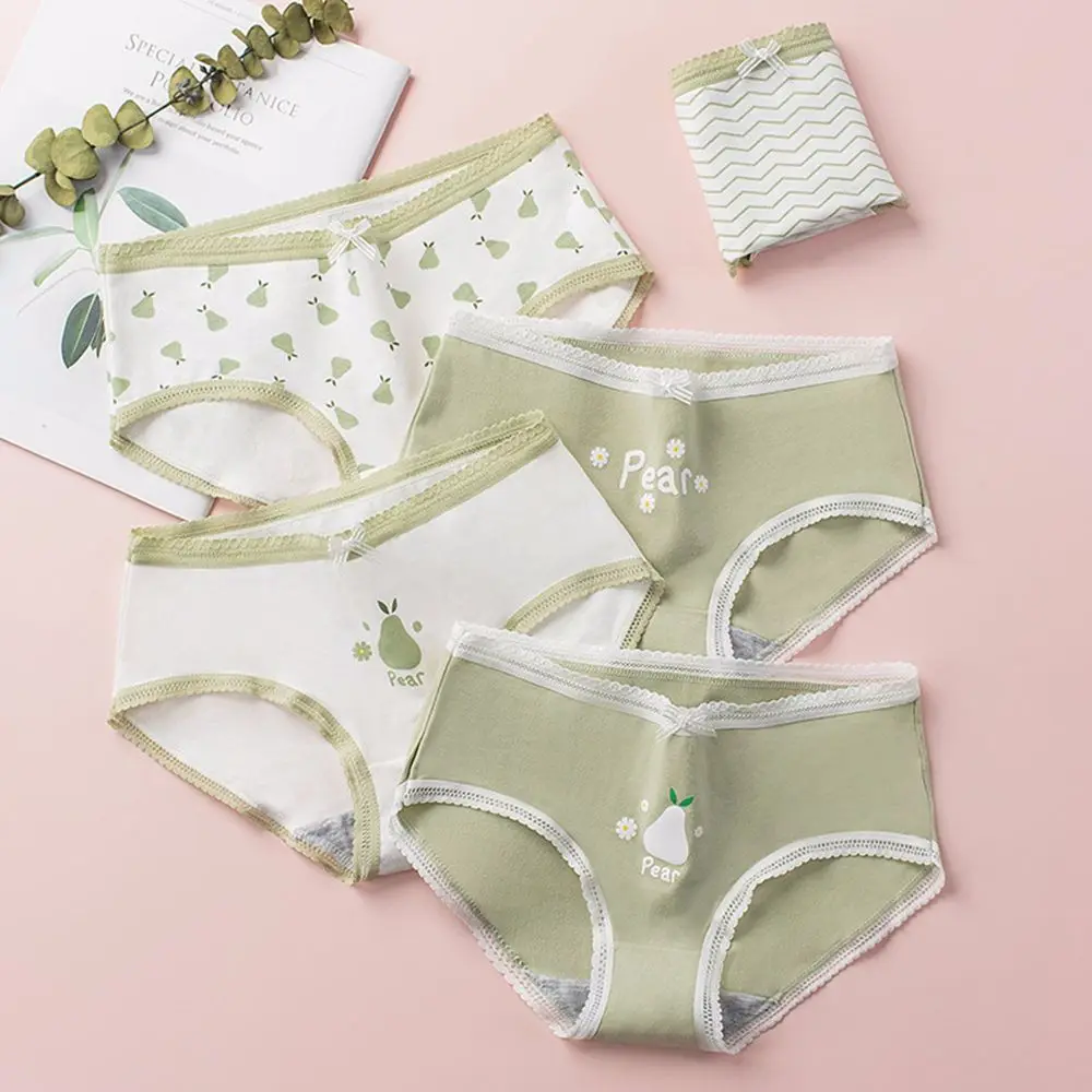 Эластичные сексуальные хлопковые трусики со средней талией и оборками, женские трусы с принтом груши, кружевные трусики с бантом