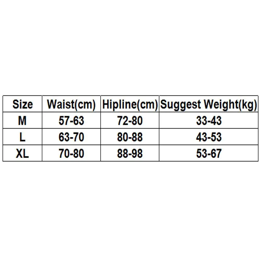 Размер: M, обхват талии: 57-63 см; Обхват бедер: 72-80 см; Рекомендуемый вес: 33-43 кг;
