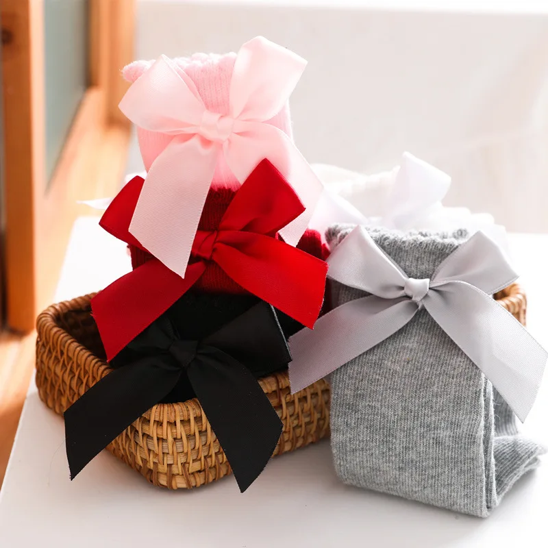 Детские носки с большим бантом для девочек, весна-осень, детские носки, однотонные носки средней длины, гольфы для малышей