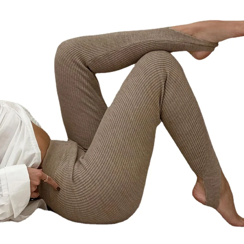 2021 трикотажные леггинсы женские повседневные эластичные брюки с в...