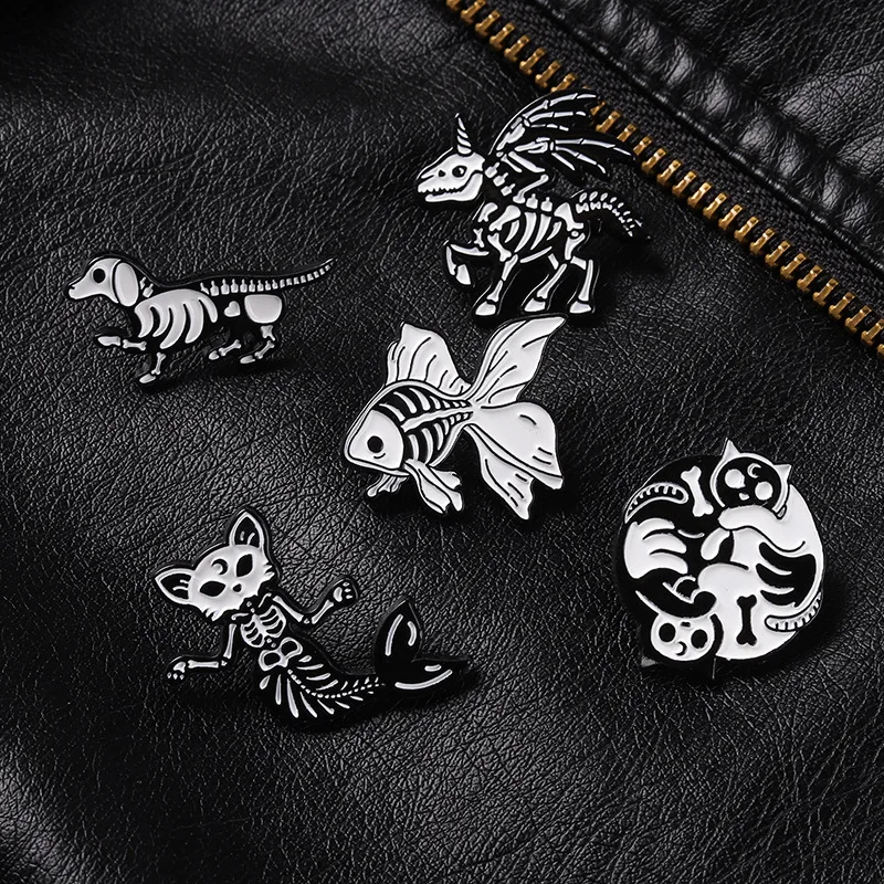2021 индивидуальная брошь с изображением кошки Инь и Ян, череп Золотая рыбка, брошь с изображением черепа, русалки, кошки, щенка, черепа, готического животного, значок для рюкзака