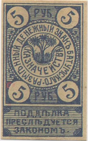 Денежный знак 5 рублей 1919 года Батумского казначейства Копия