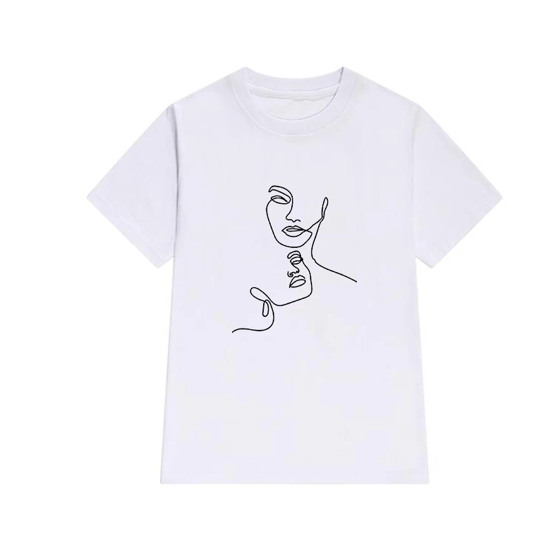 Футболка женская с принтом лиц, Повседневная рубашка с линейным принтом лиц, с коротким рукавом, с графическим принтом, белая, размер XXXL, на лето