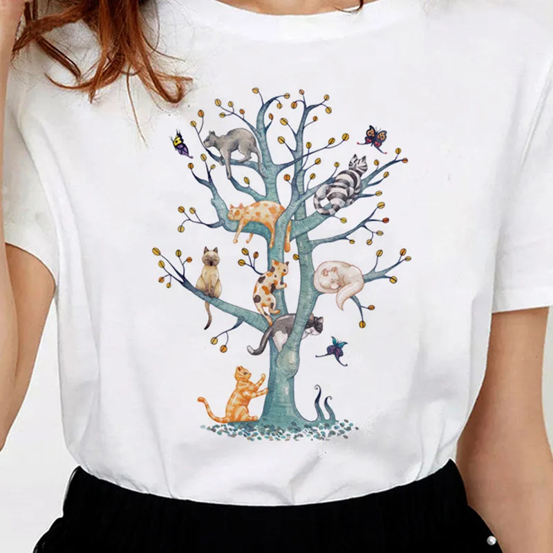 Женская забавная футболка kawaii cat в Корейском стиле ulzzang Футболка женская графическая Повседневная эстетичная футболка женский топ