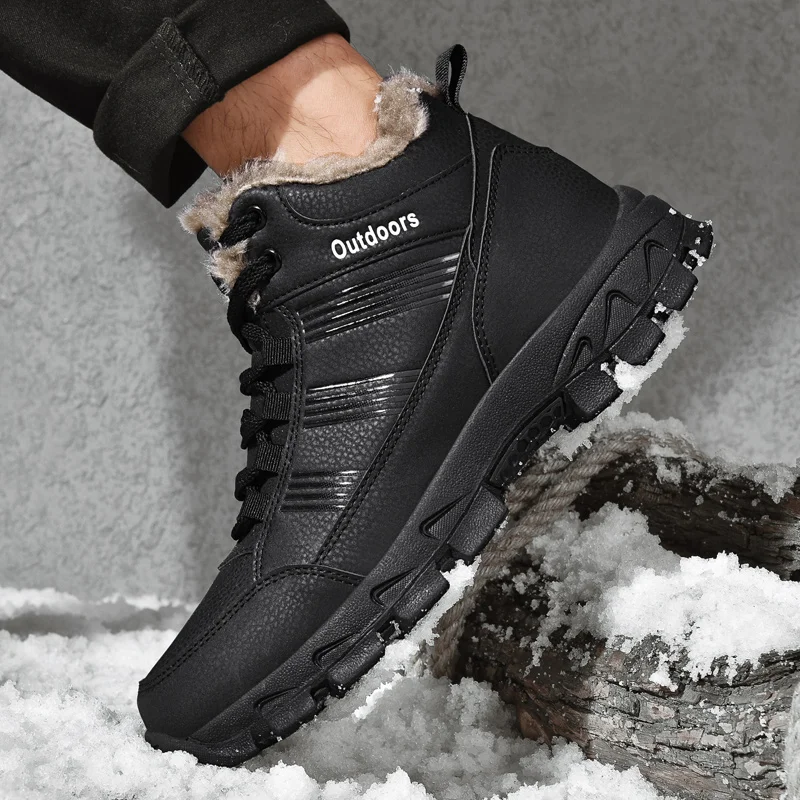 Ботинки мужские кожаные, теплые водонепроницаемые меховые сапоги, уличная зимняя Рабочая повседневная обувь, Военные боевые резиновые ботильоны