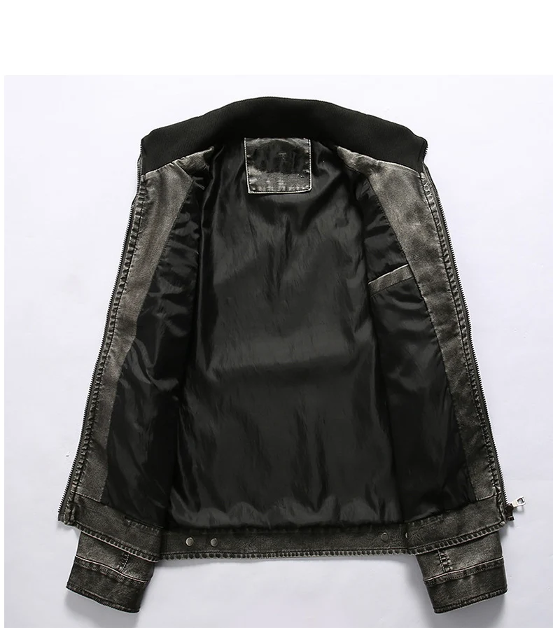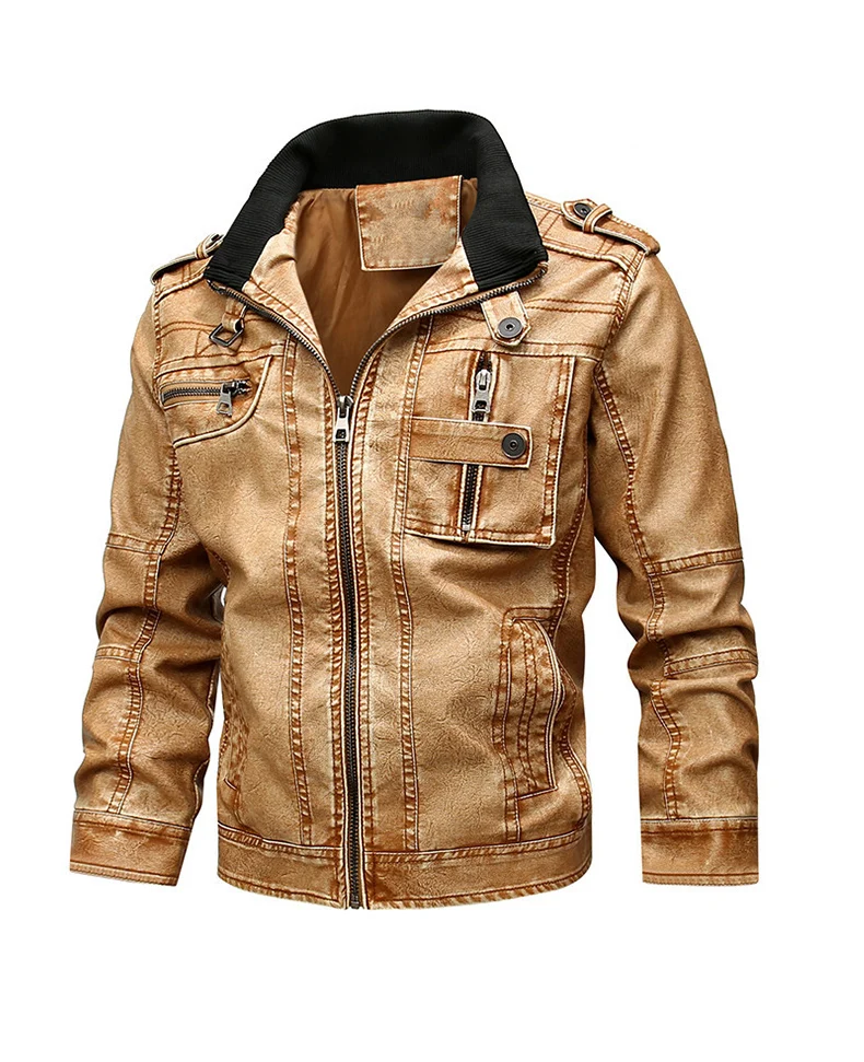 Мужская походная куртка из искусственной кожи с воротником-стойкой,...