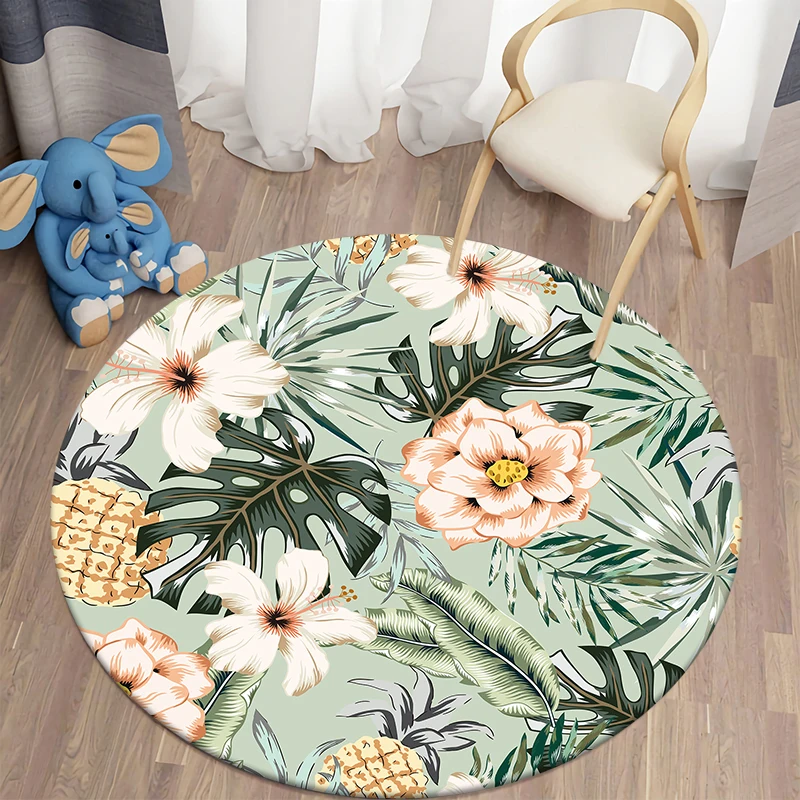 Круглые ковры для гостиной, зеленые тропические коврики с принтом для гостиной, спальни, детские коврики, декоративные Нескользящие дверные коврики для туалета и ванной