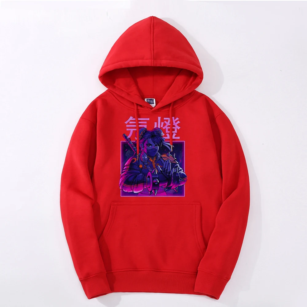 Мужская толстовка с капюшоном, Красная толстовка с рисунком из япон...