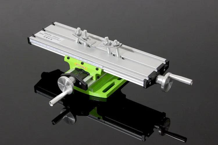 Многофункциональный мини-стол BG6300. Этот верстак подходит для мини-настольных дрелей и подставок для дрели. Его также можно наносить на другие подходящие машины. Верстак состоит из нескольких регулируемых алюминиевых сплавов «Ласточкин хвост», которые гарантируют минимальное пространство для движения и обеспечивают точность. Верстак имеет три Т-образных паза на рабочей поверхности. Стандартный размер паза 15x8x6 мм. Переднюю линейку можно разместить в движении. Нулевой маховик 1,25 мм. Маленькая ячейка равна 0,05 мм. Ход оси X составляет 200 мм, а ход оси Y-50 мм. Размер рабочей поверхности 310x90 мм, общая высота 80 мм, включая два рабочих зажима.