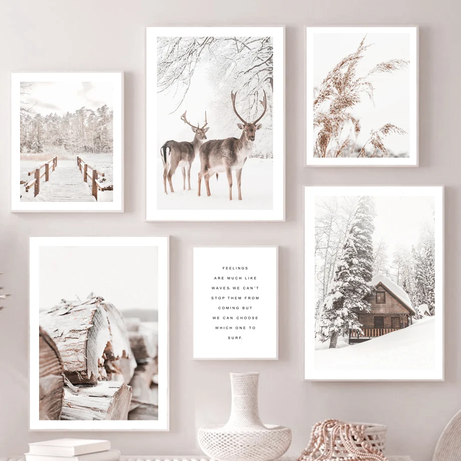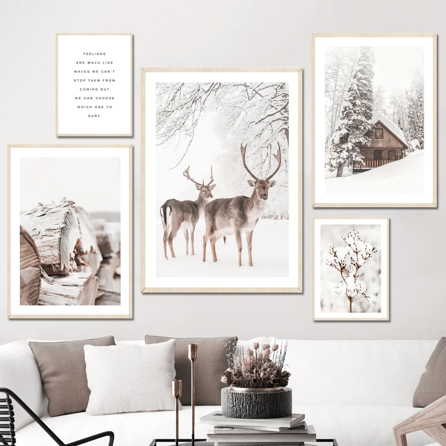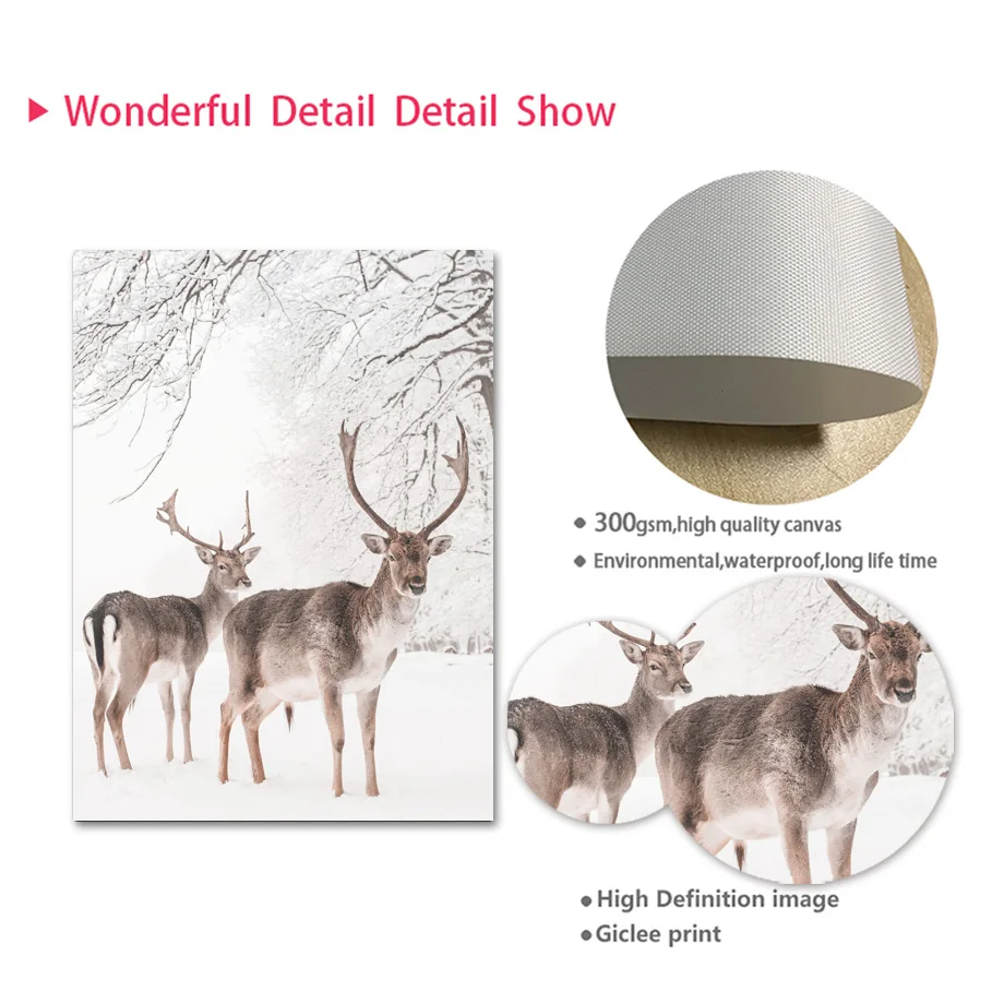 Природа олень утка тростник снег дерево настенная Картина на холсте скандинавские постеры и принты настенные картины для гостиной зимний Декор