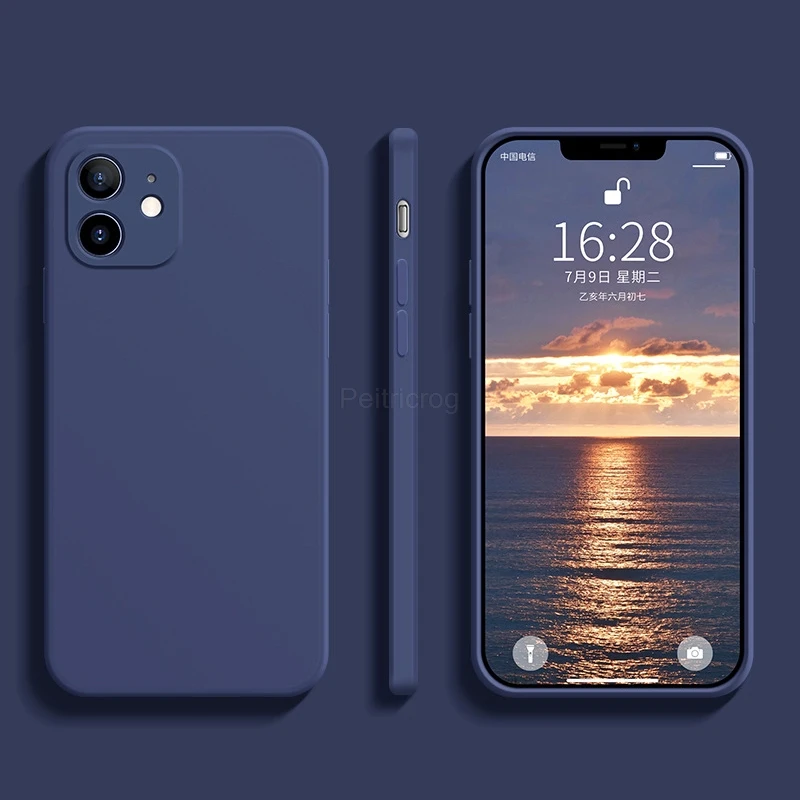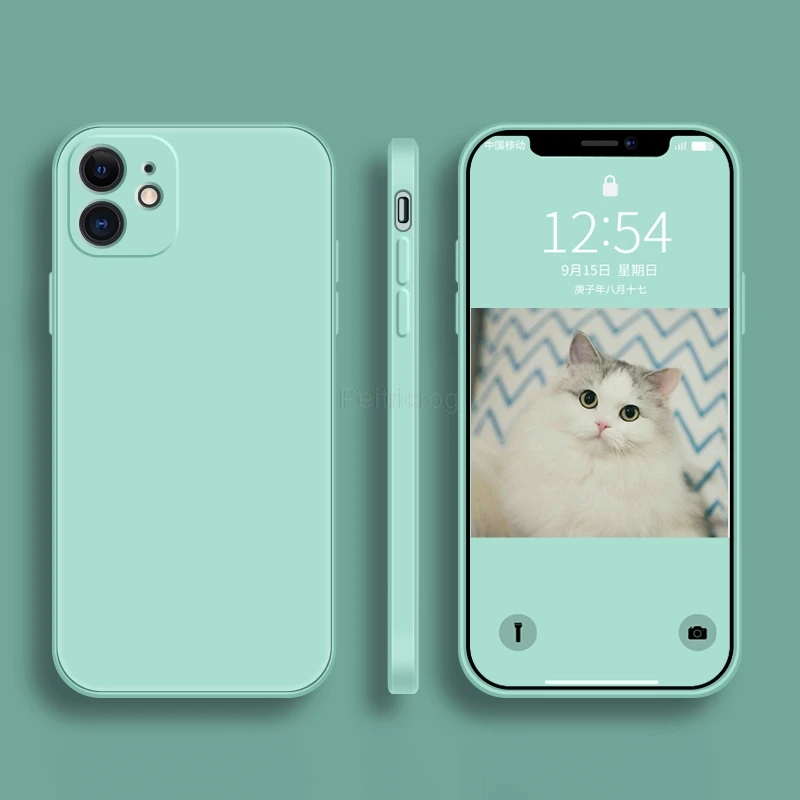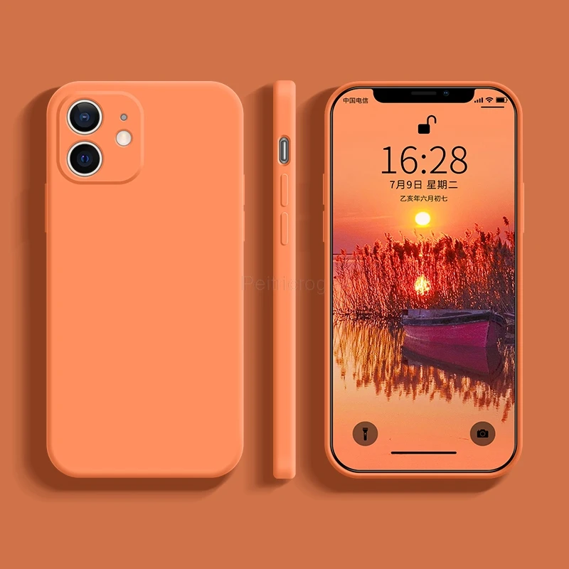 Жидкий силиконовый чехол для iPhone 12 11 Pro Max XS XR X 8 7 6s 6 Plus SE2020 12 Mini TPU, мягкий защитный чехол с прямыми краями для телефона