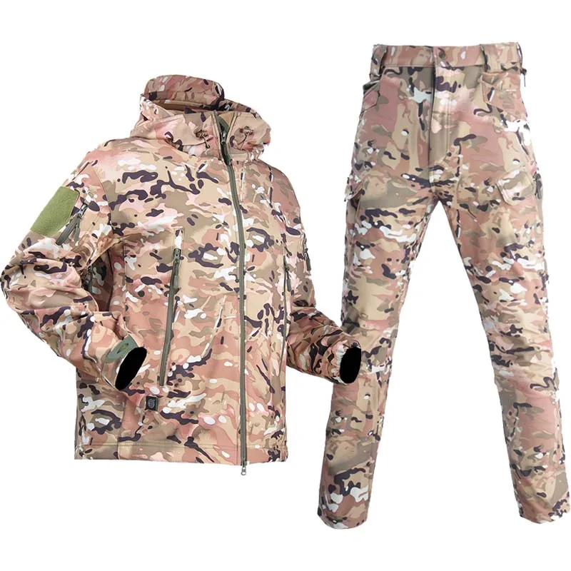 Тактический комплект из мягкой куртки и брюк, мужские армейские куртки и брюки, водонепроницаемая теплая камуфляжная одежда, военное флисовое пальто, ветровка, костюм одежды