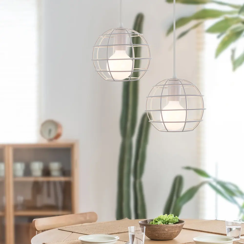 Категория: подвесные светильникиКоличество: 1 шт.Материал: железоСтиль освещения: современный, винтажный, промышленный, ретроЦвет: белыйТип лампы: потолочные светильникиДержатель лампы: E27 (лампочки не включены)Светильник Тип источника: Эдисон лампы, светодиодные лампы, лампы накаливанияДлина шнура: 100 см (регулируется)Потолочное основание Размеры: диаметр 10 смРазмер абажура: как показано на картинкеФорма абажура: клеткаНапряжение: 110-240 ВМощность: ACРазмер: как показано на картинкеПрименимое пространство: гостиная/столовая/ресторан/бар/ДругоеПримечание: Этот продукт не включает лампу, вам нужно купить его самостоятельно!Посылка включает в себя:1 x подвесные потолочные светильники (без лампы)