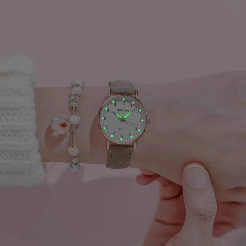 Модные женские повседневные кварцевые часы, светящиеся Женские Аналоговые наручные часы с кожаным ремешком, Аксессуары для платья, подарок 2021